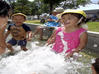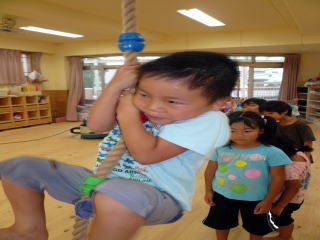 毎日のリズム運動、はだし保育を心がけています。暑さ寒さに負けない丈夫な身体を作ります。 |